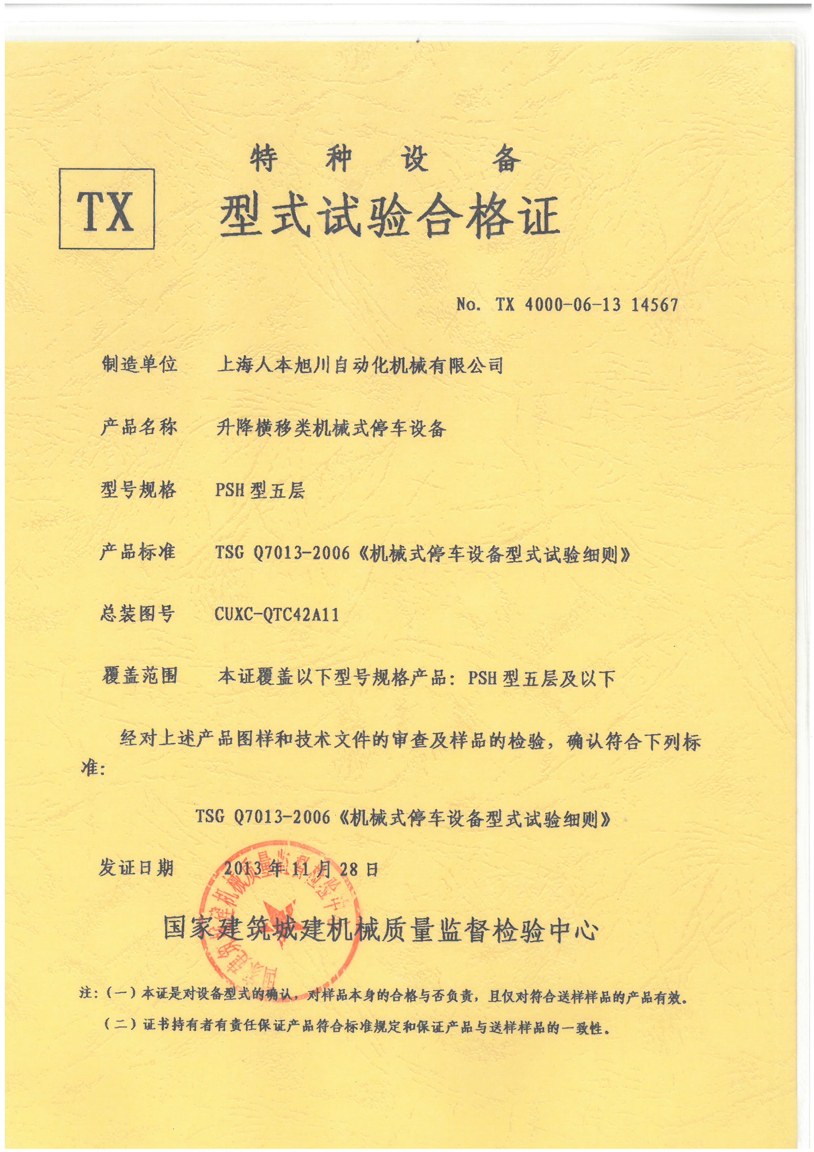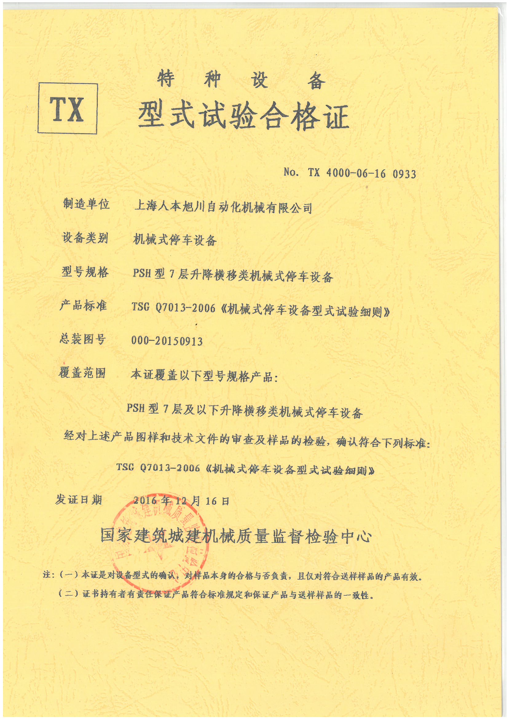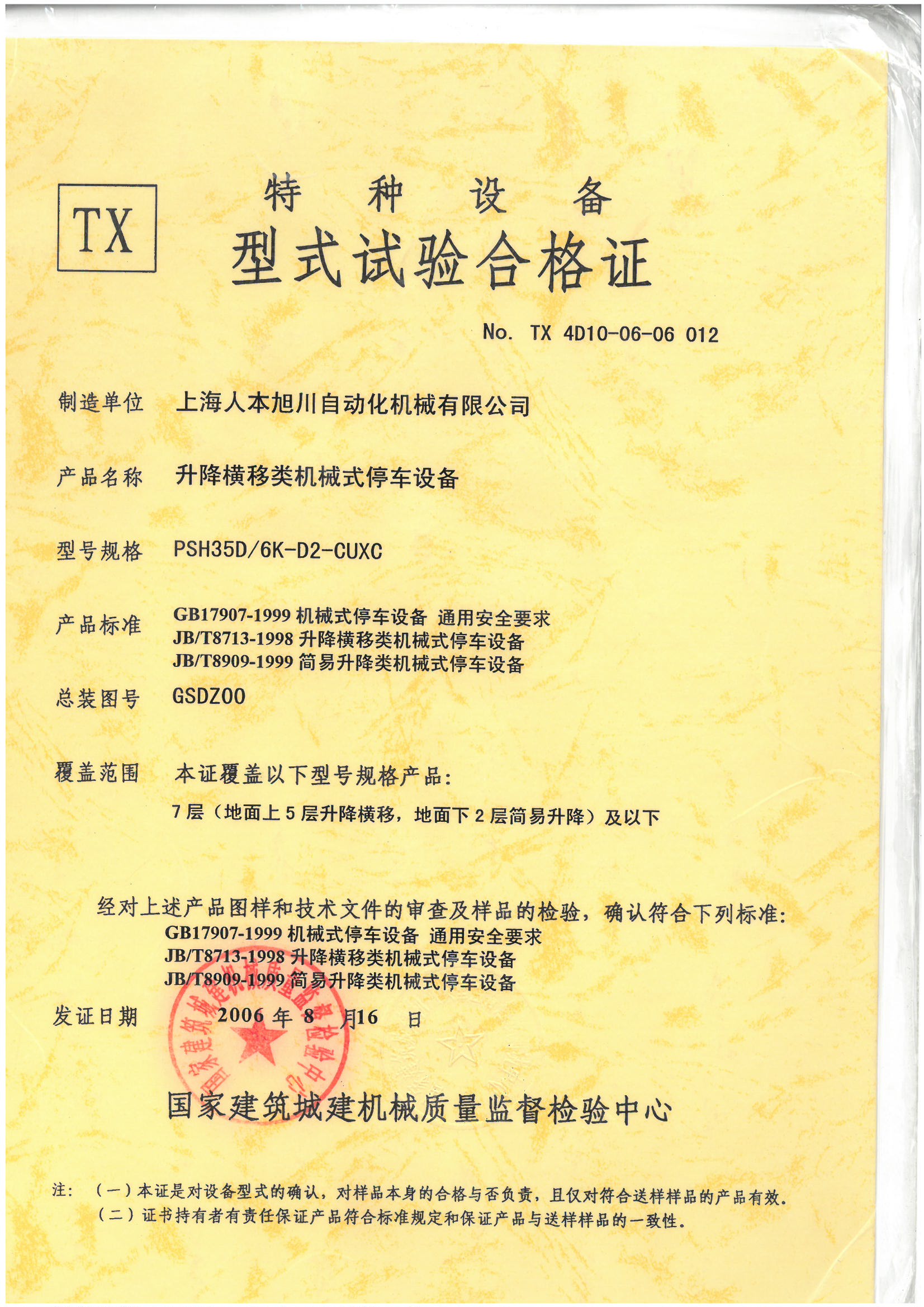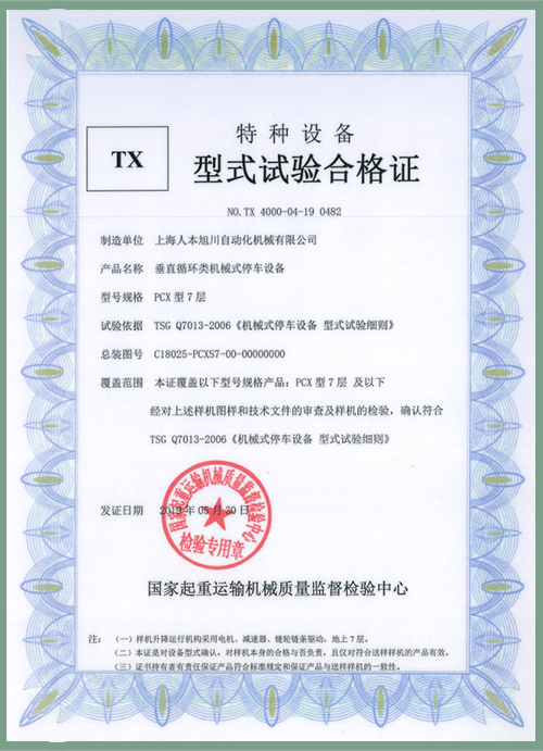 PSH7層型式試驗(yàn)合格證