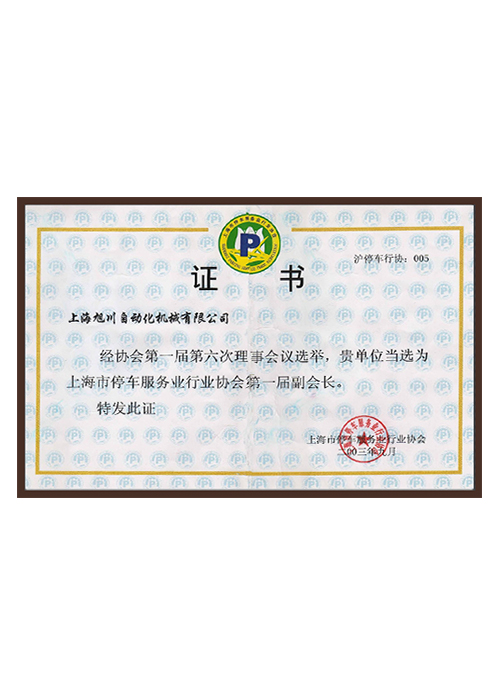 停車服務(wù)行業(yè)協(xié)會(huì)第一屆副會(huì)長證書