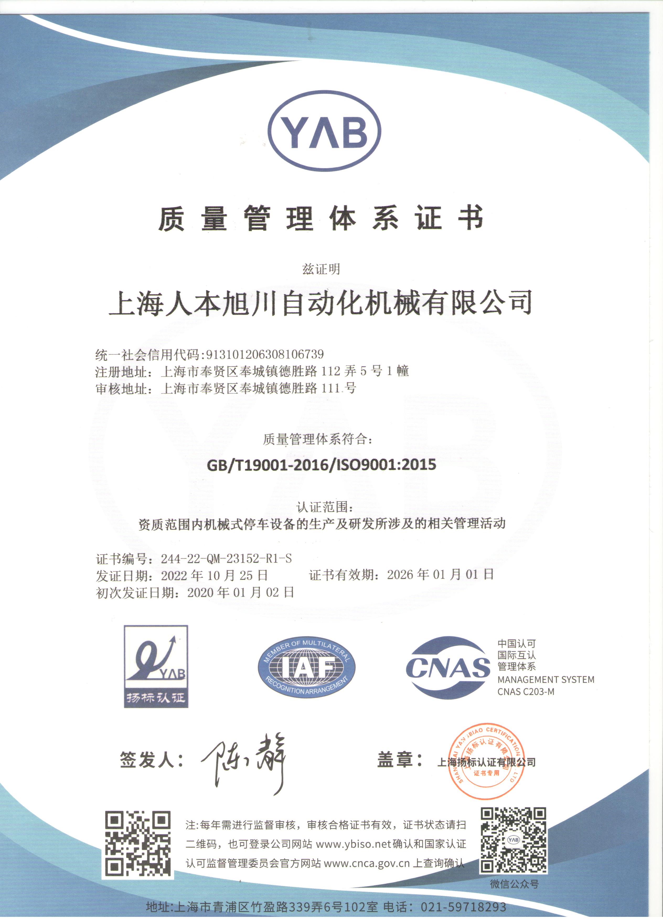 質(zhì)量管理體系認(rèn)證證書