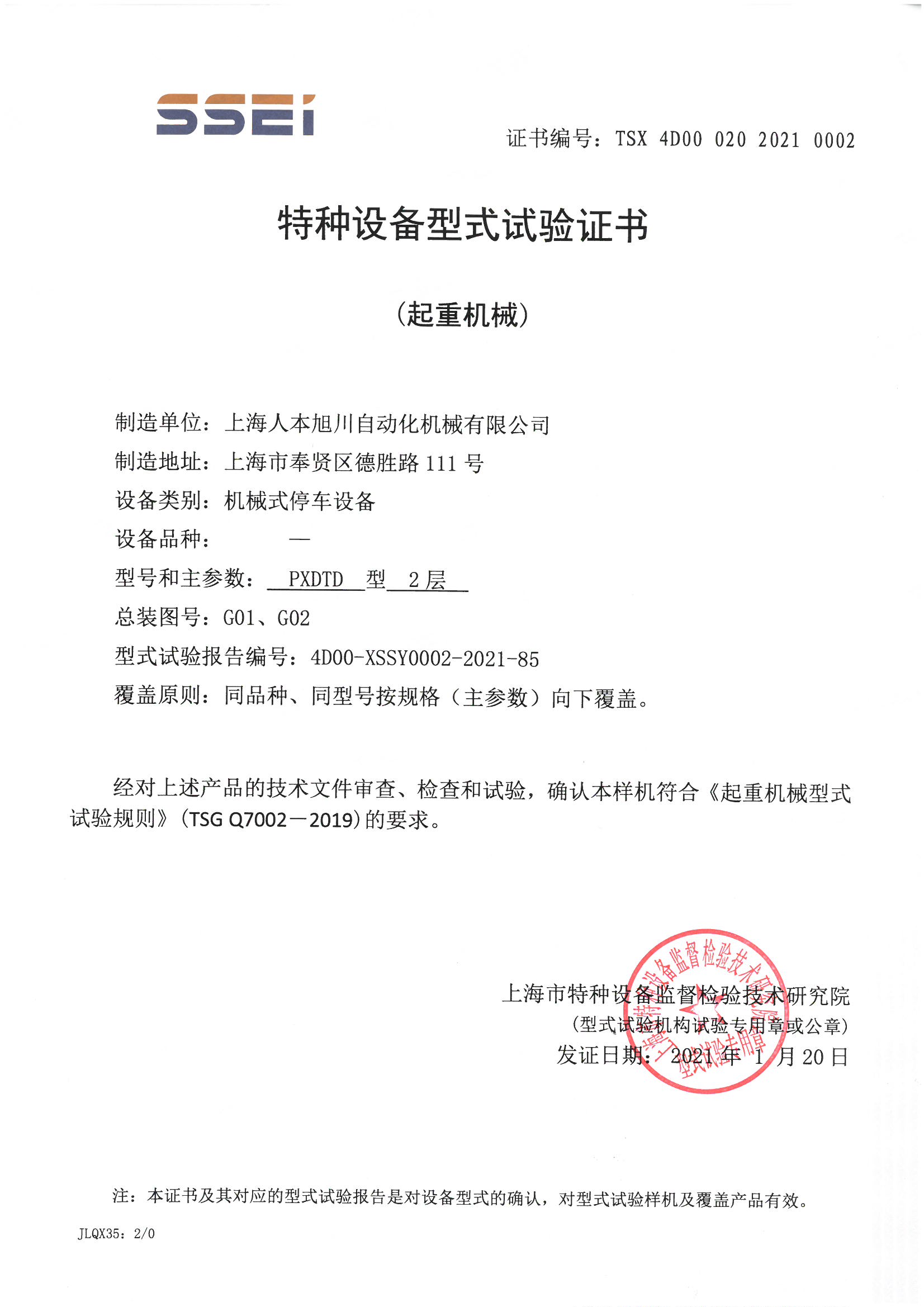 PXDTD型2層型式試驗(yàn)證書