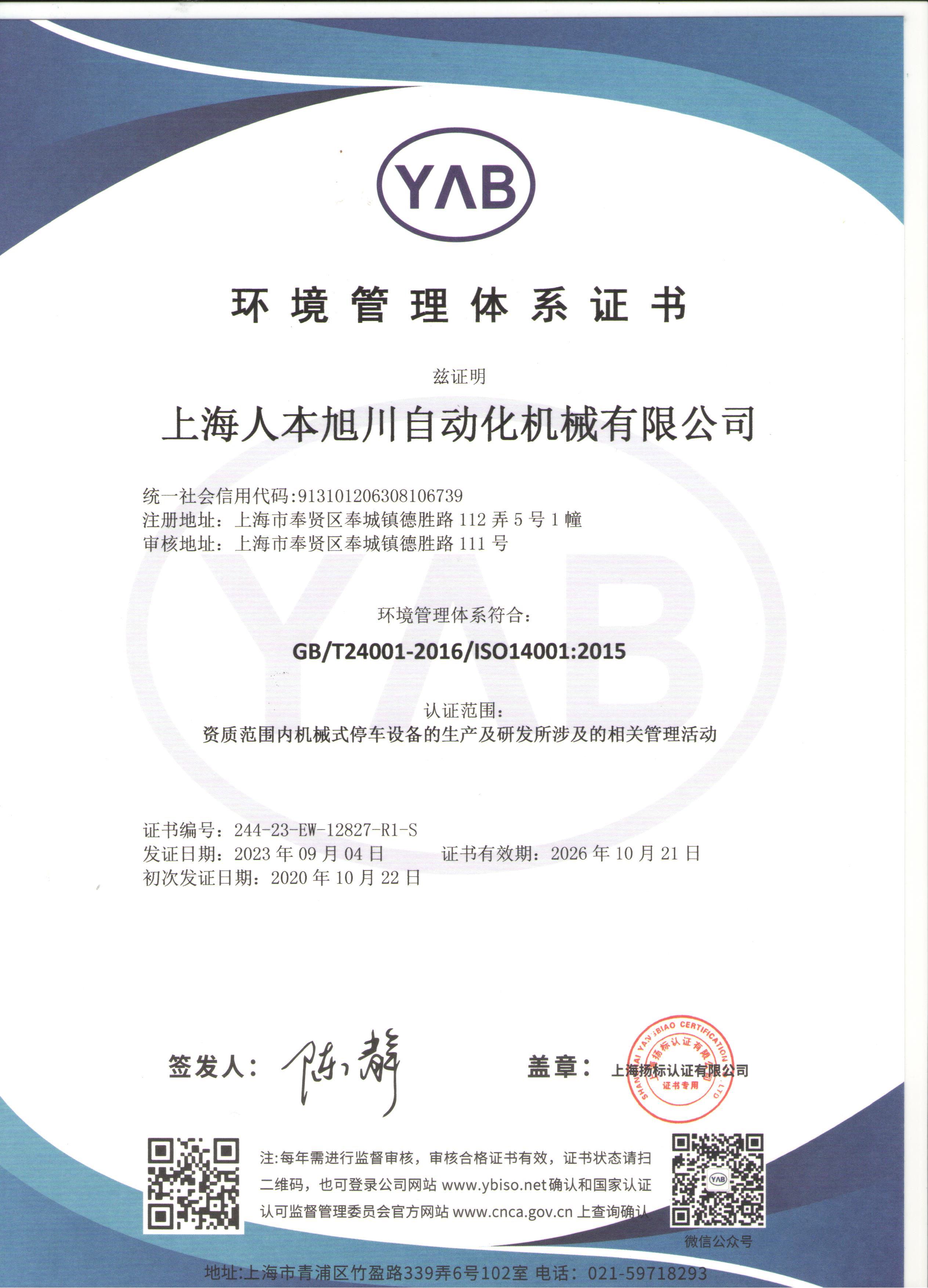 環(huán)境管理體系認(rèn)證證書